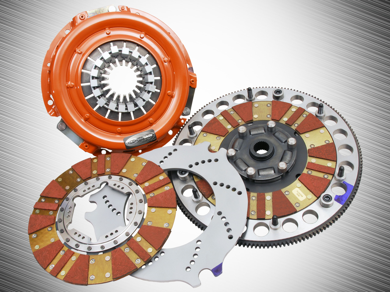 Płytki na tarczy, w porównywaniu do zwykłej tarczy są znacznie grubsze o nawet 40%, ponieważ muszą wytrzymać znacznie większą podatności na ścieranie i temperatury które im towarzyszą . W układzie w którym zastosowano sprzęgło sportowe, montuje się również odporniejsze rodzaje docisków. Wykonuje się je zazwyczaj z odlewu aluminiowego lub ze stopów stali. Dzięki zastosowani tak trwałych elementów, możliwe jest wyeliminowanie spalanie się sprzęgła w samochodach sportowych, oraz efekt „ślizgania się” sprzęgła przekładający się na wyniki samochodu.
